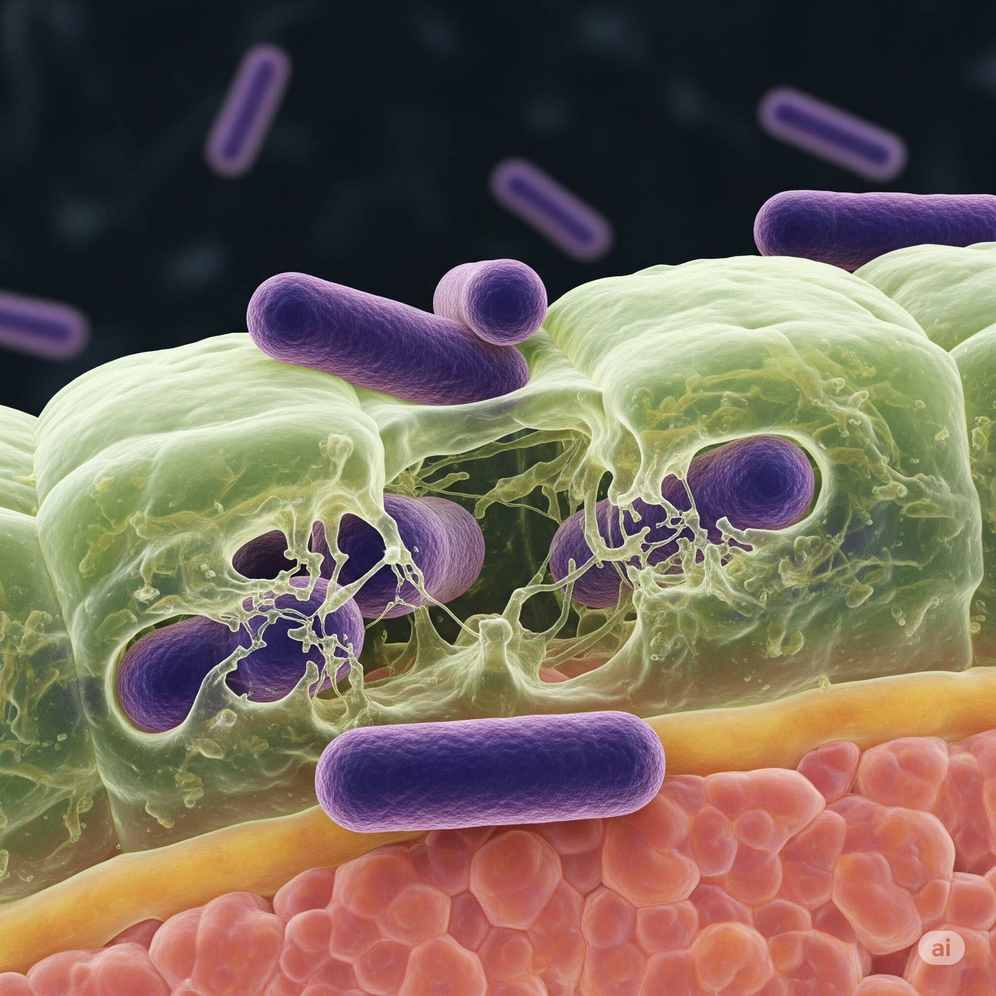 Continuing with our worker analogy, imagine the mucosal layer as the compound wall of the factory. It acts as a barrier, preventing microbes and harmful byproducts like toxins from entering our body. As a mark of rebellion, the first thing to break down is part of this protective wall, as the microbes begin to feed on the mucus layer.