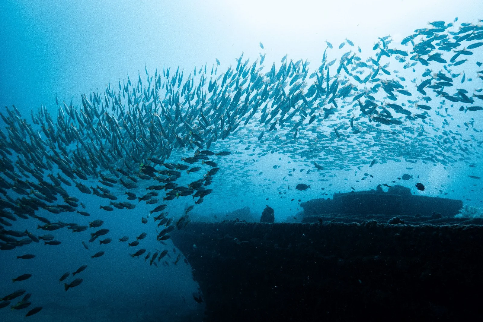 A school of snapper fish swimming in the shelter of a shipwreck (Source: Anjleen Hannak).